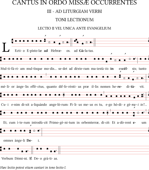Versione del 5 set 2023 alle 18:31 di Stefano Ferri (discussione | contributi) (Toni communes LECTIO II VEL UNICA ANTE EVANGELIUM. Notazione quadrata su foglio A4.)
