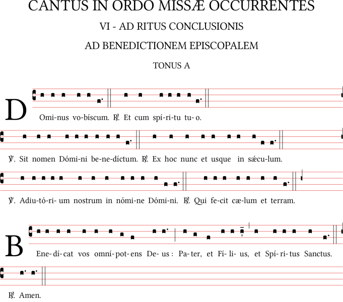 Versione del 11 set 2023 alle 14:58 di Stefano Ferri (discussione | contributi) (Toni communes: DOMINUS VOBISCUM (AD BENEDICTIONEM EPISCOPALEM - A). Notazione quadrata su foglio A4.)