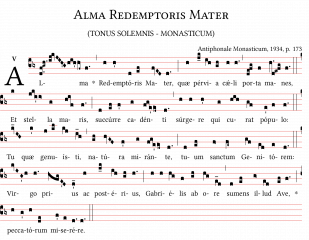 ALMA REDEMPTORIS MATER (TONUS SOLEMNIS o MONASTICUM), notazione quadrata su foglio A4.