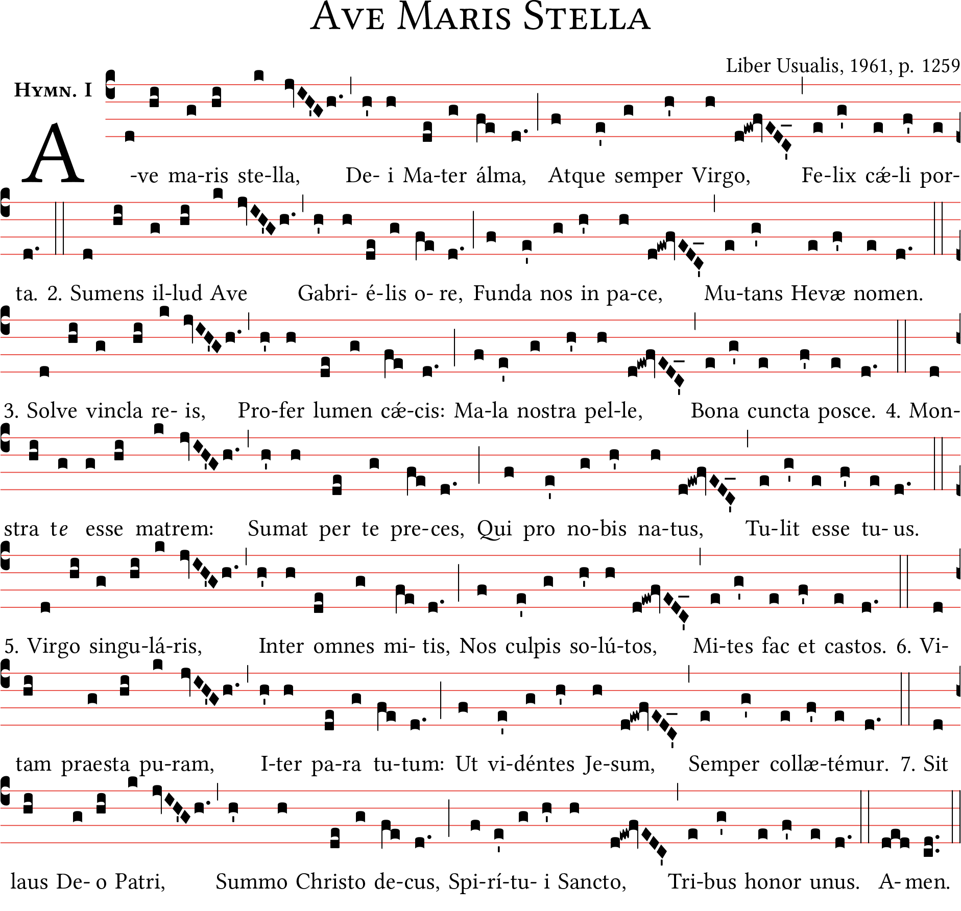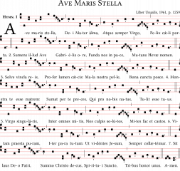 Inno AVE MARIS STELLA, versione Solesmes. Foglio A4 notazione quadrata.