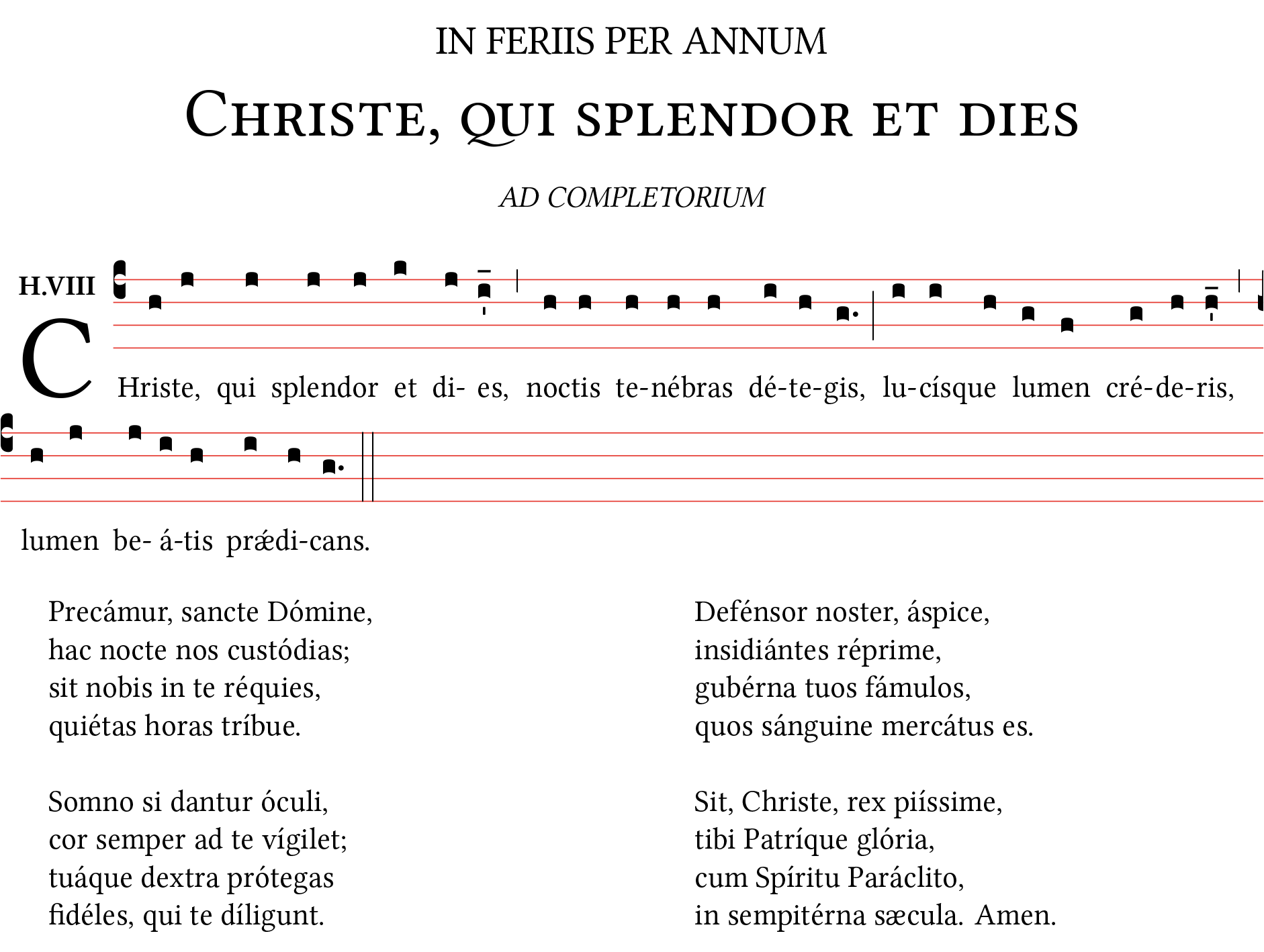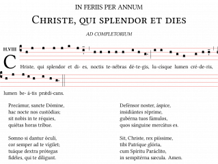 Hymnus CHRISTE, QUI SPLENDOR, In feriis per annum. Notazione quadrata su foglio A4.