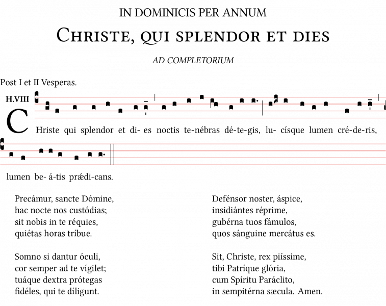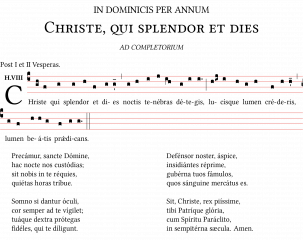 Hymnus CHRISTE, QUI SPLENDOR ET DIES, in Dominicis per annum. Notazione quadrata su foglio A4.