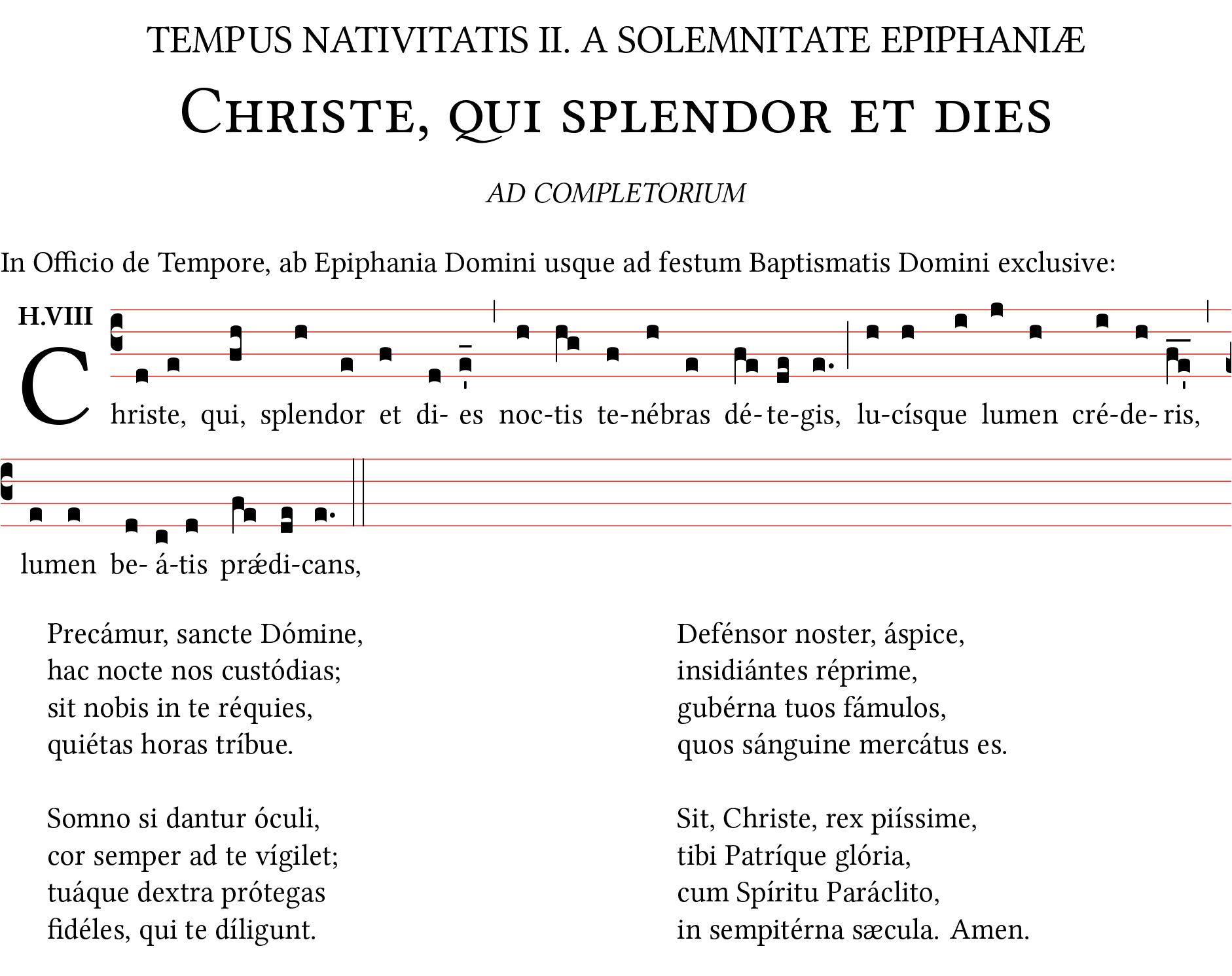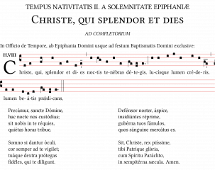 Inno CHRISTE, QUI SPLENDOR ET DIES, Tempus Nativitatis a Solemnitate Epiphaniae. Notazione quadrata su foglio A4.