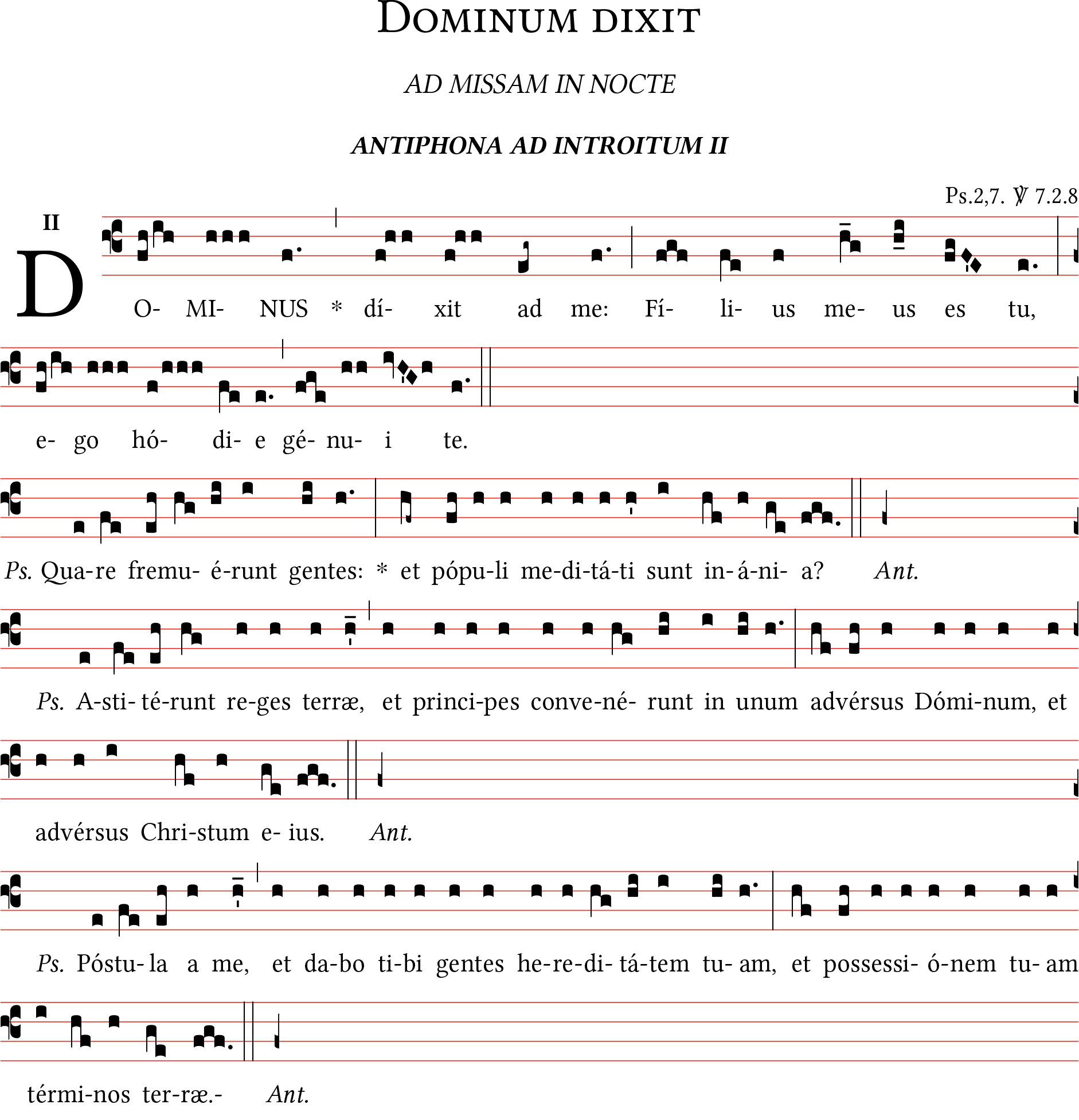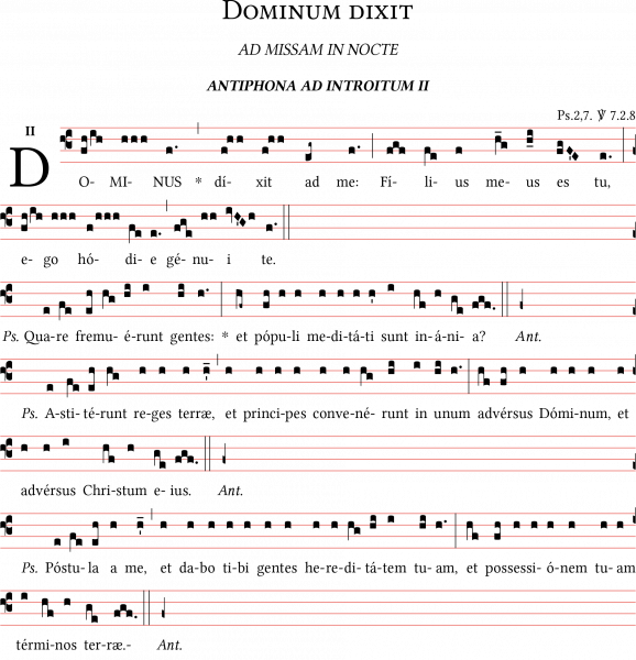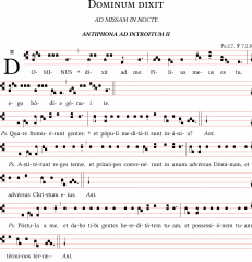 Antiphona ad introitum "Dominum dixit", Messa della notte di Natale. Notazione Quadratica, foglio A4.