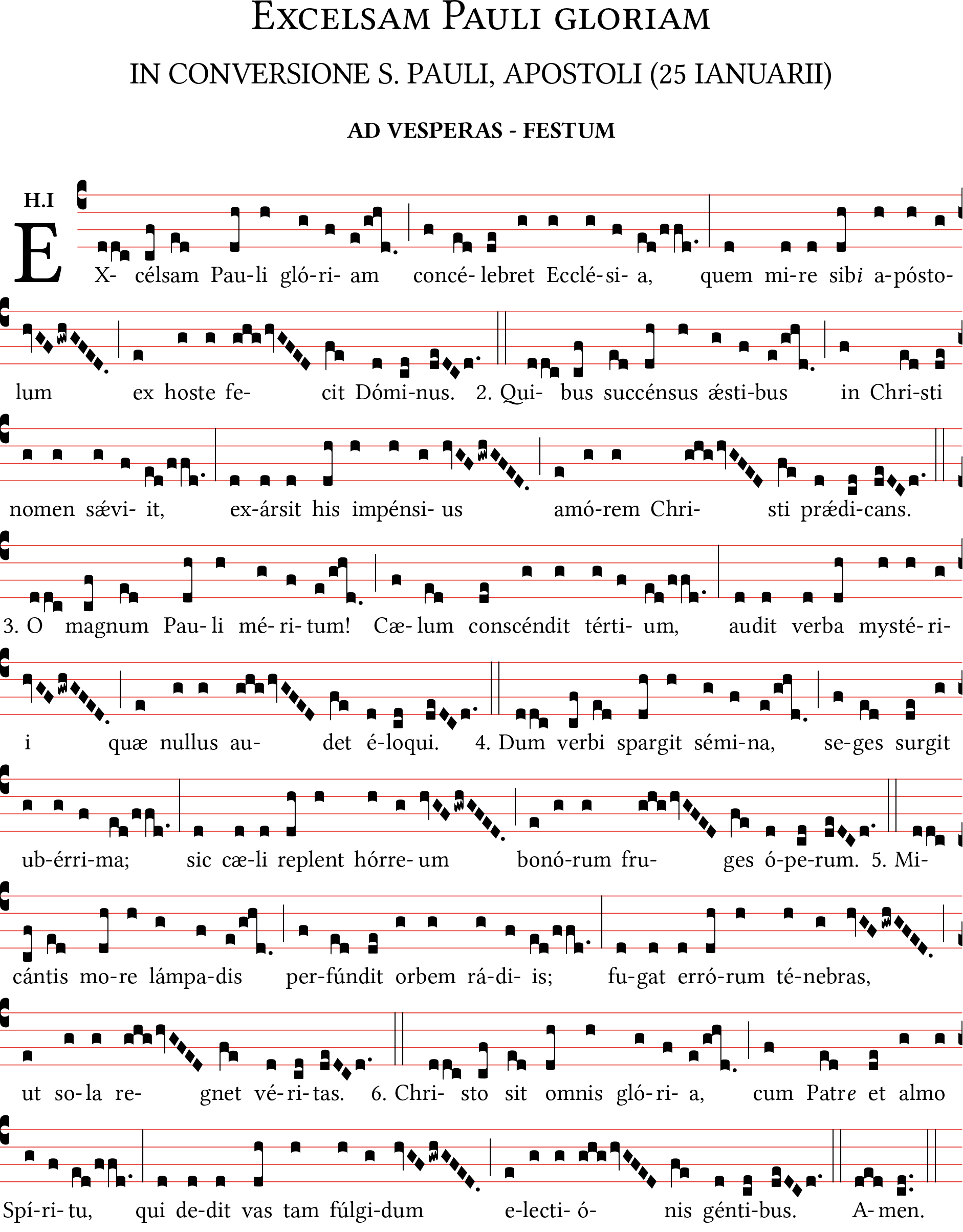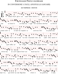 Inno EXCELSAM PAULI GLORIAM. Notazione quadrata su foglio A4.