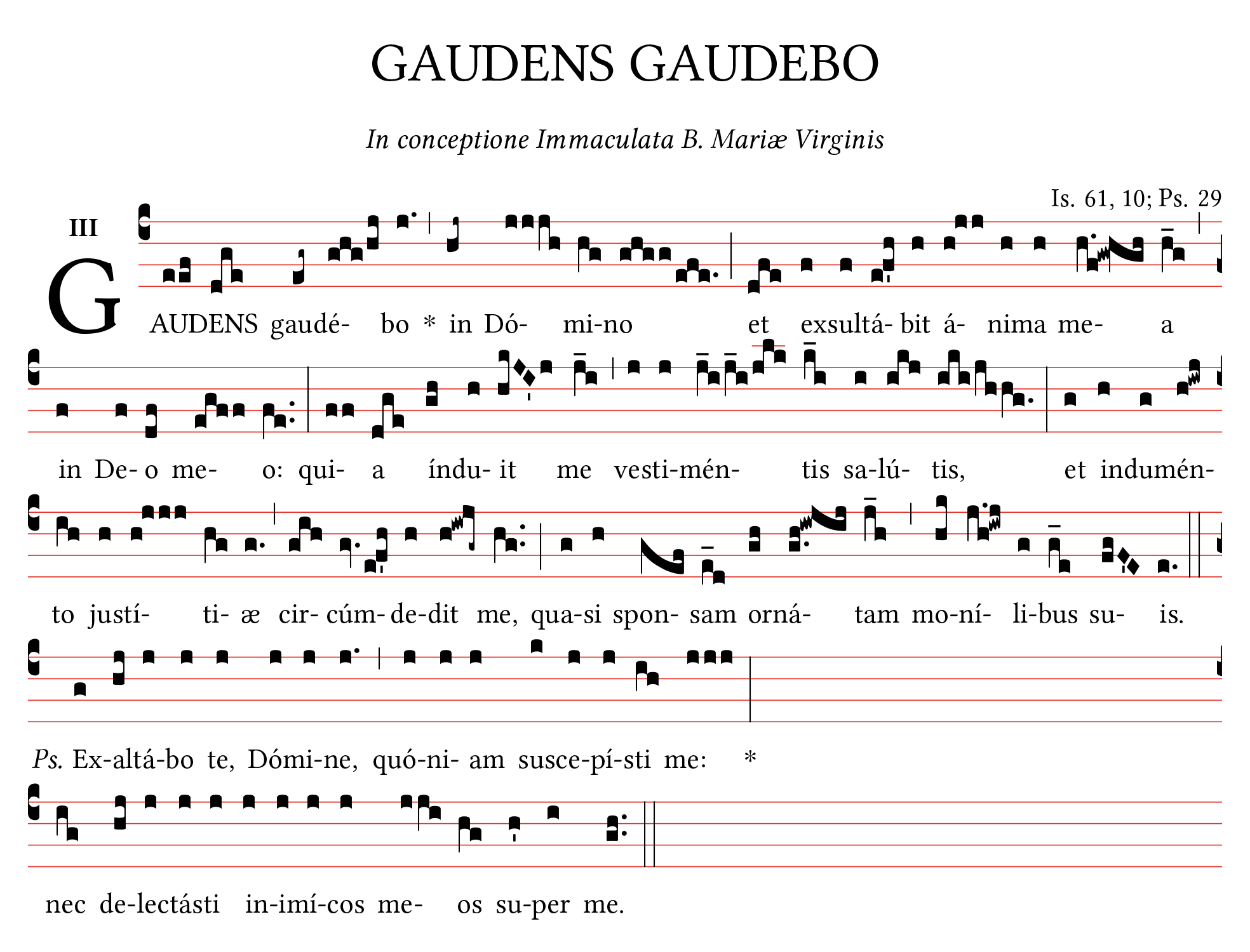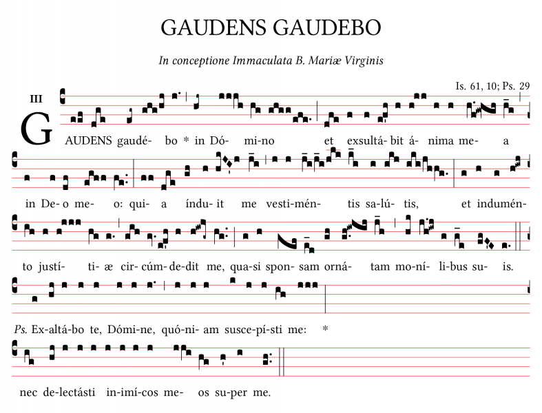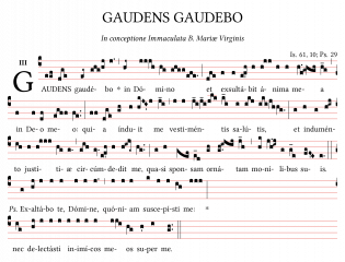Antiphona ad Introitum: GAUDENS GAUDEBO (Immaculata Conceptione), notazione quadrata su foglio A4.