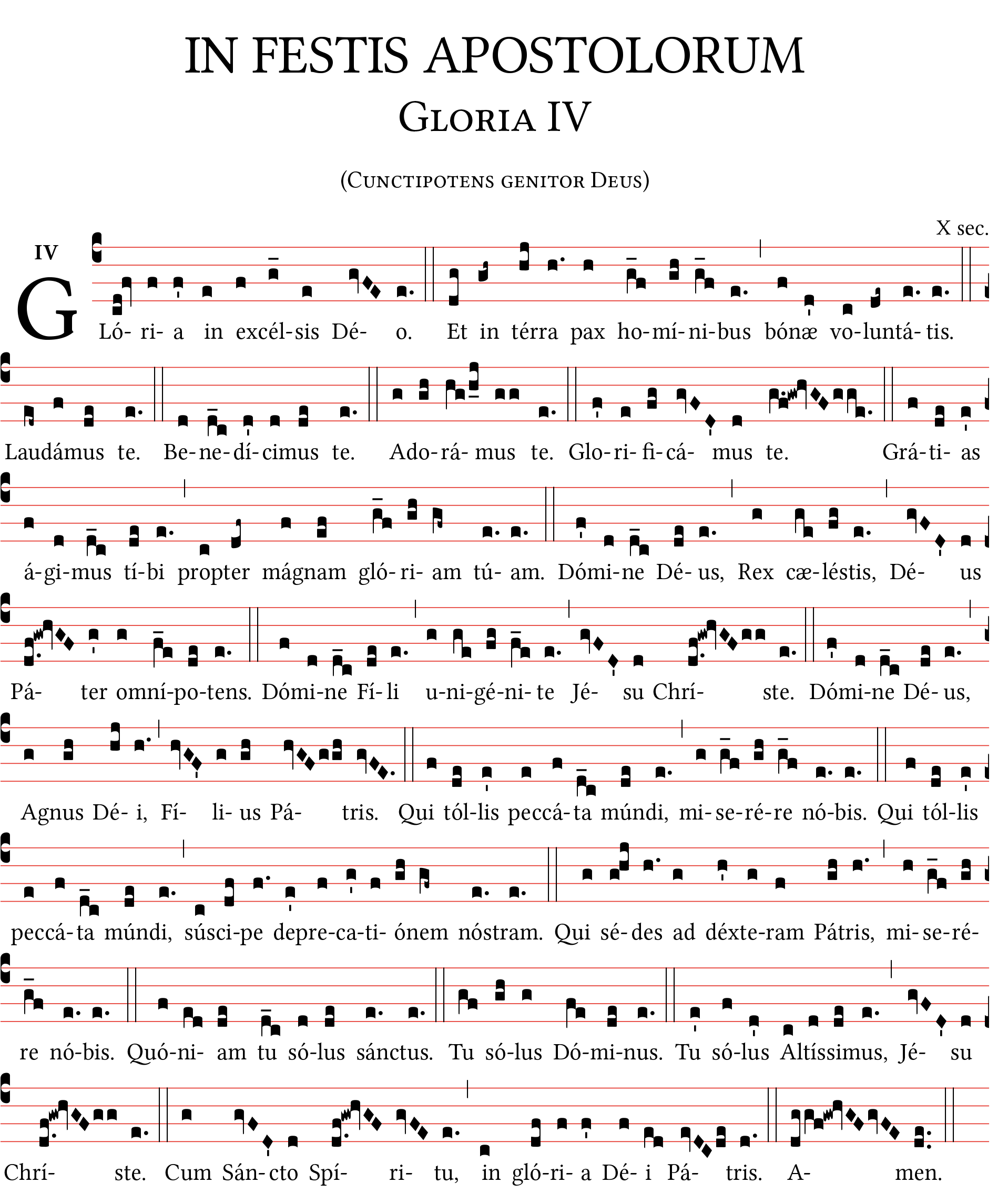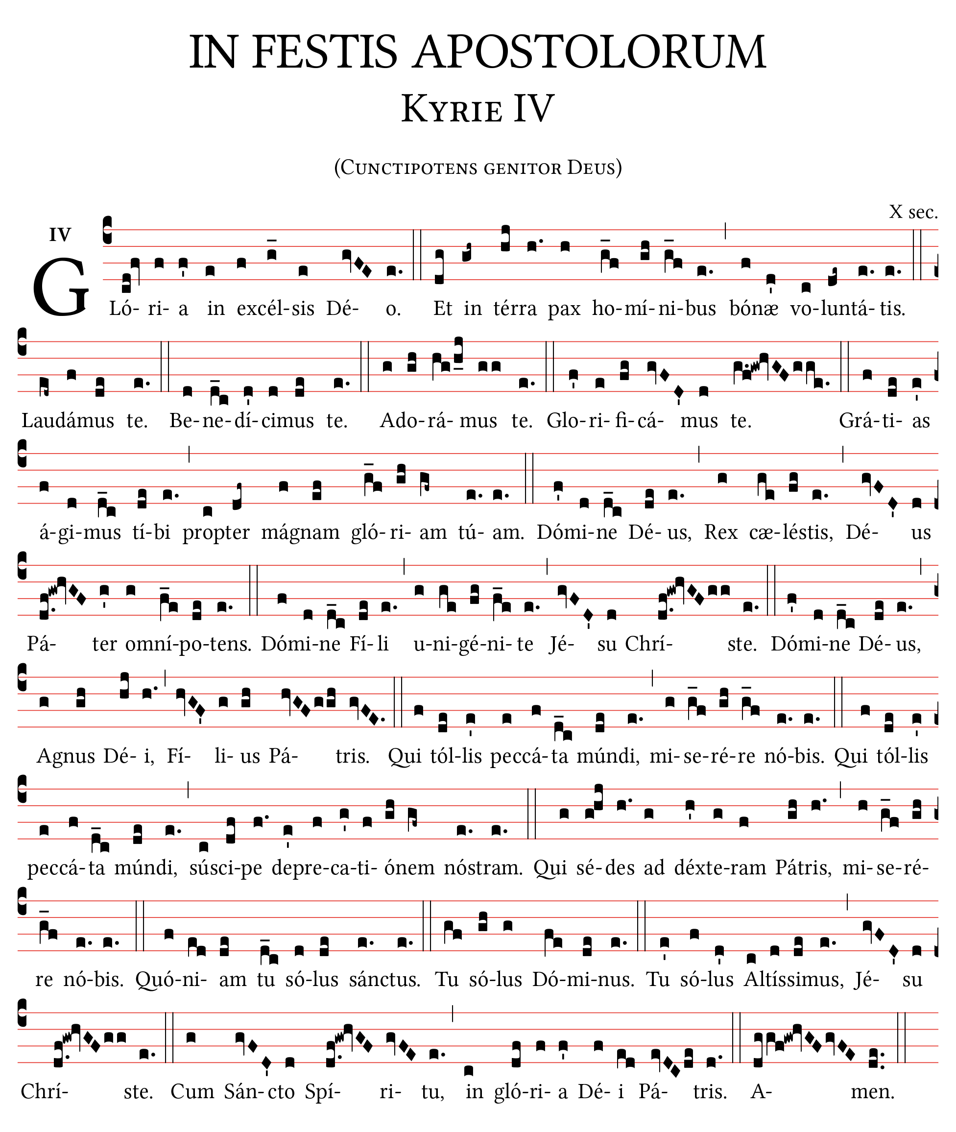 Missa IV - Gloria IV Cunctipotens genitor Deus (IN FESTIS APOSTOLORUM), formato A4 notazione quadrata