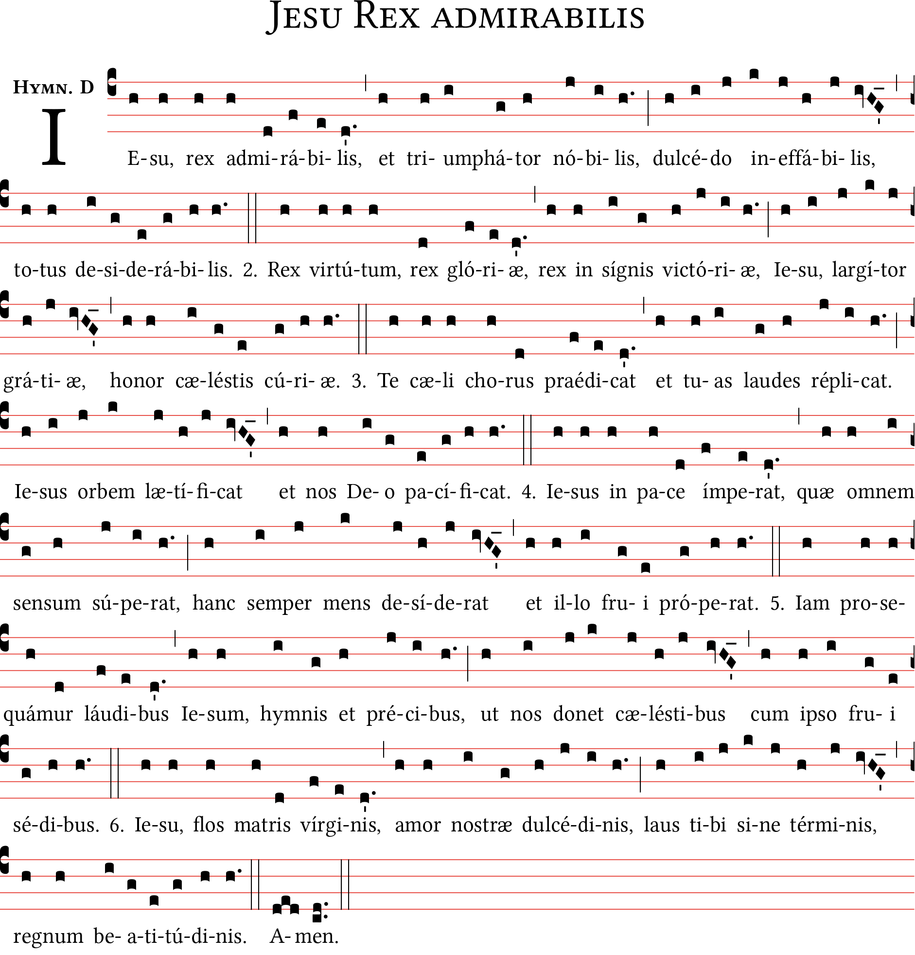 Jesu Rex admirabilis, Hymnus, notazione quadrata su foglio A4.