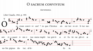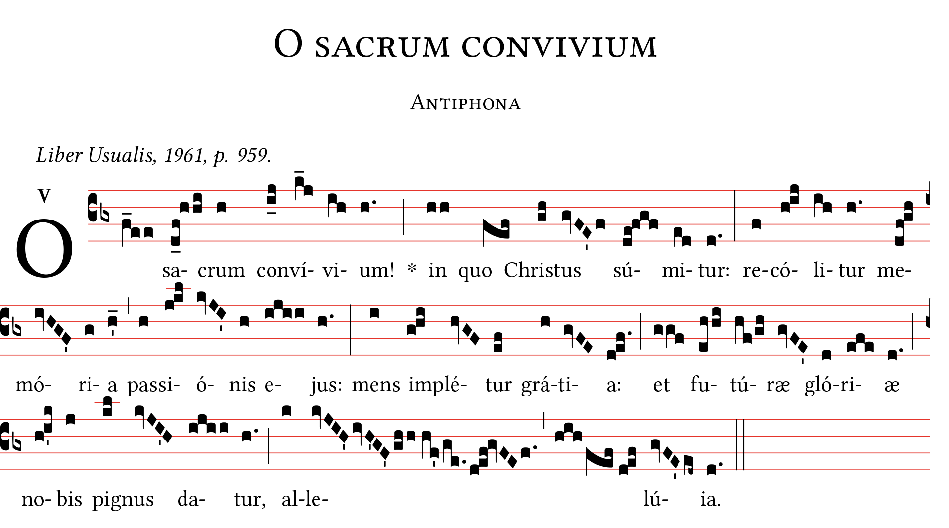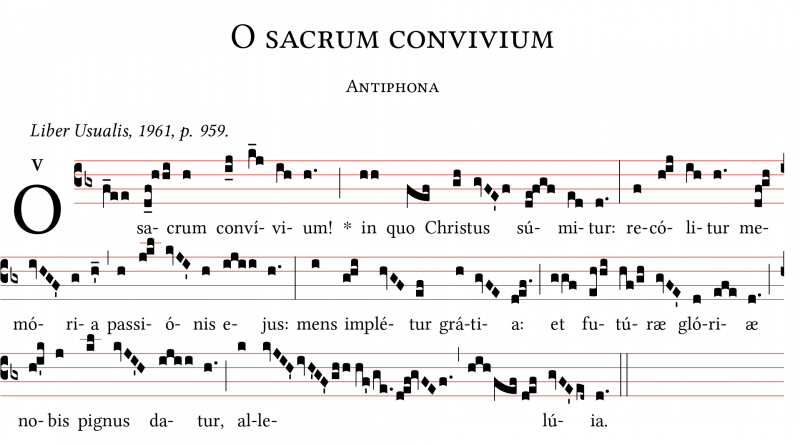 Antiphona O SACRUM CONVIVIUM (versione 1961), notazione quadrata su foglio A4.