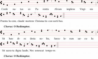 Responsorio O REDEMPTOR con strofe. Graduale Romanum 1975, pag 159. Notazione quadrata su foglio A4. Pagina 2.