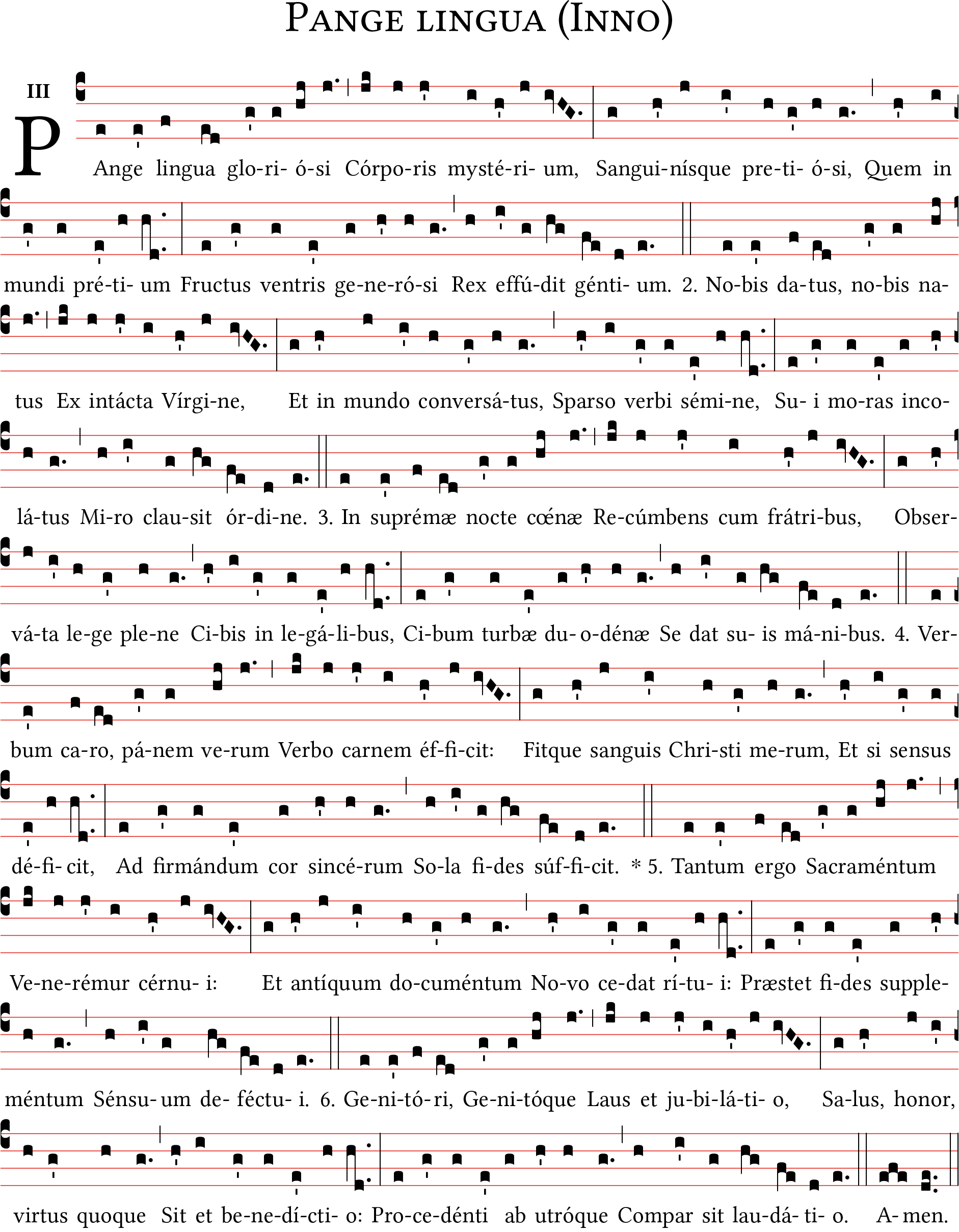 Inno completo PANGE LINGUA, notazione quadrata su foglio A4 PDF.