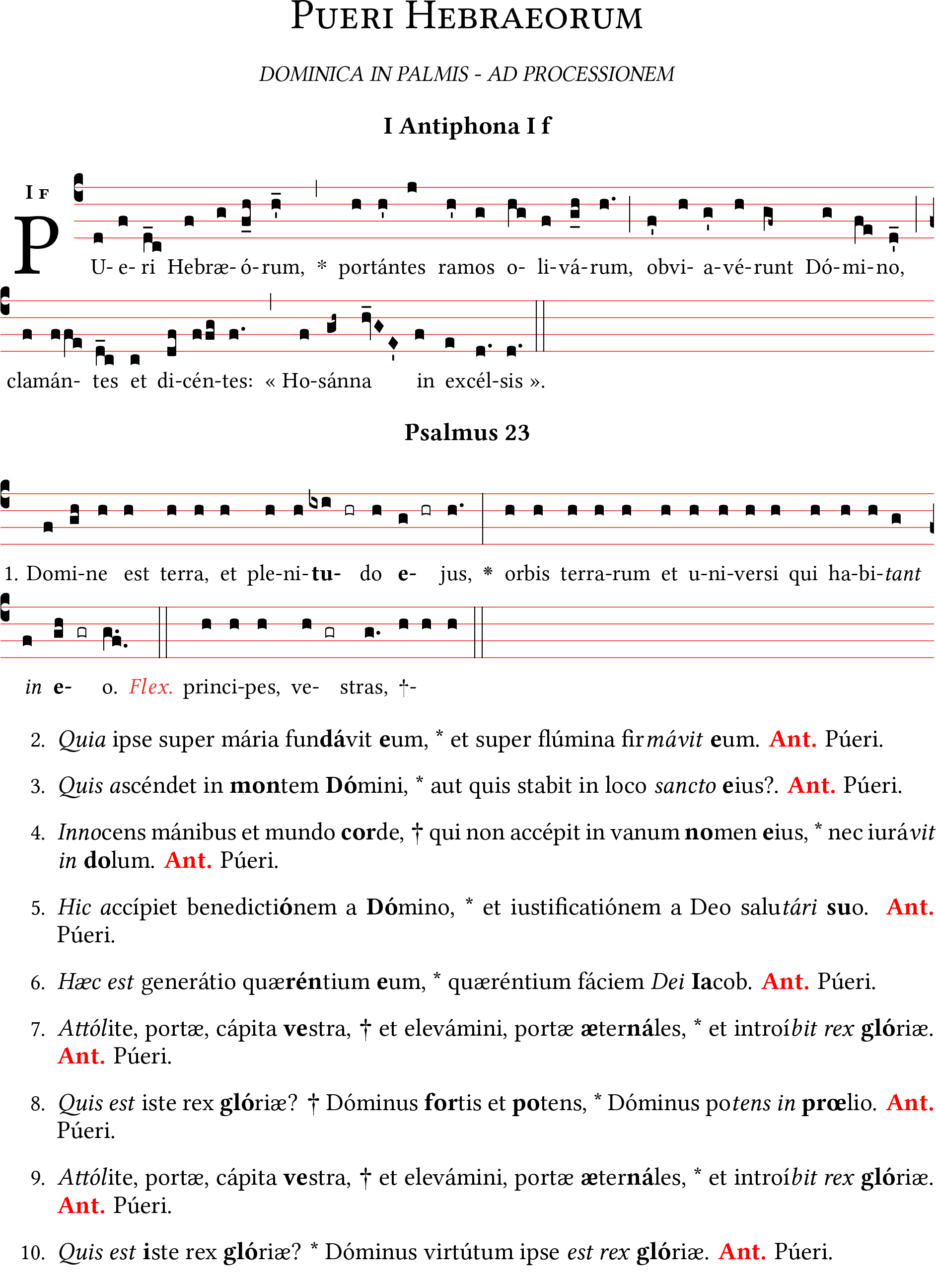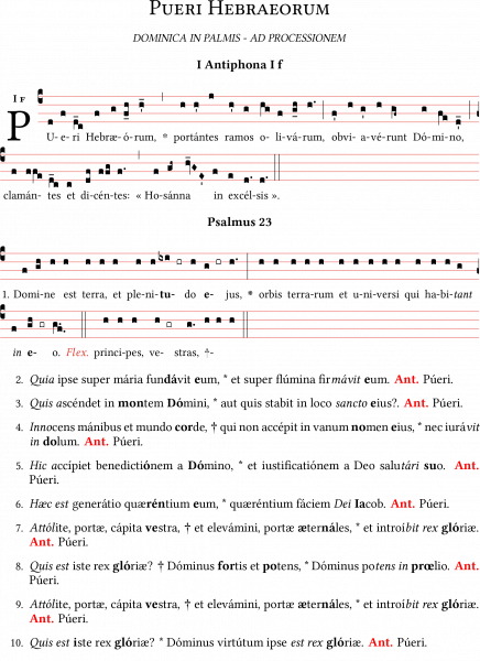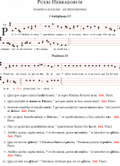 Antiphona "Pueri Hebraeorum", processione della Domenica delle Palme, notazione quadrata su foglio A4.