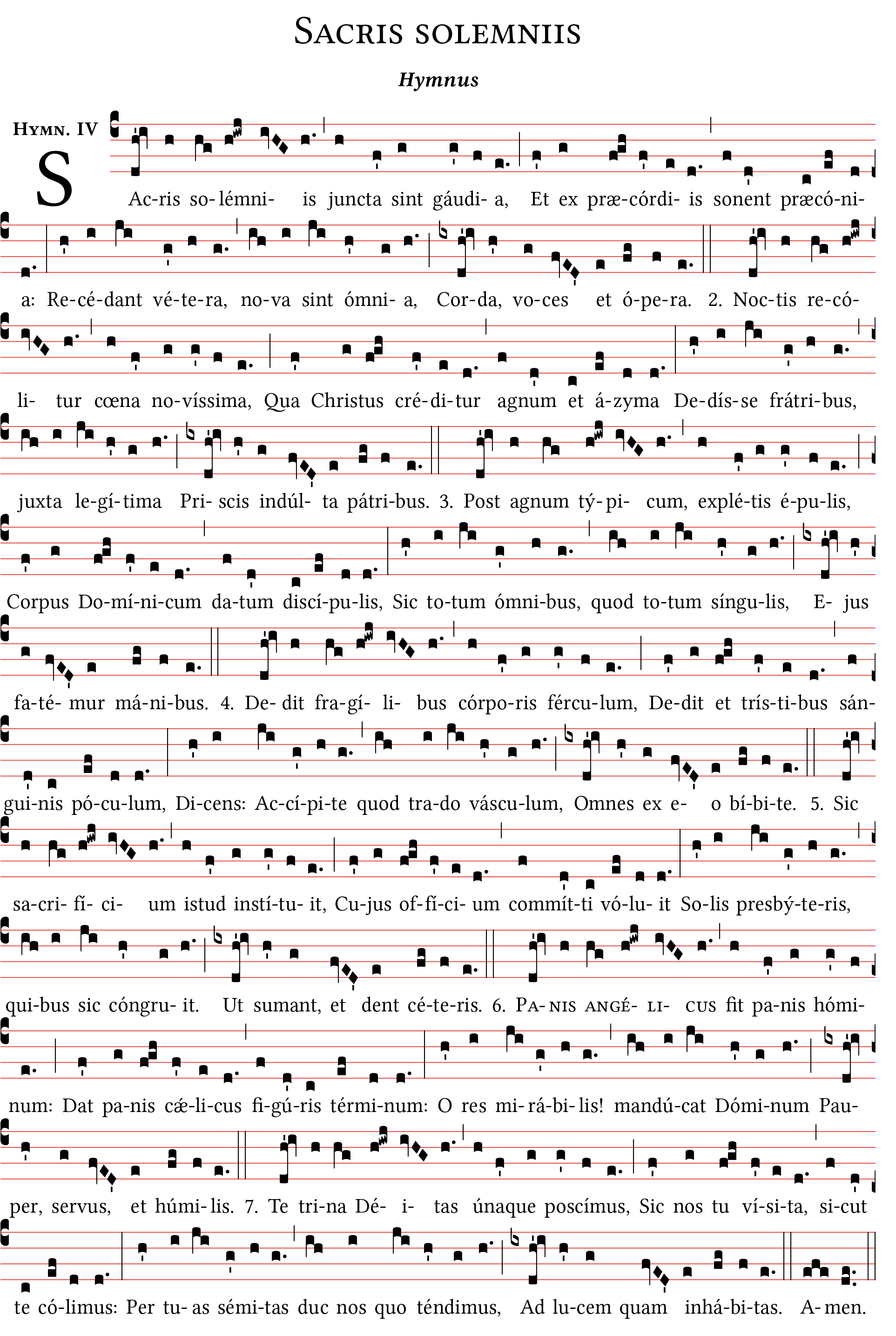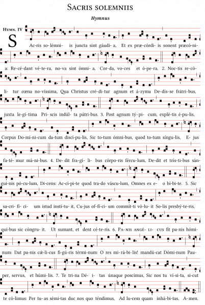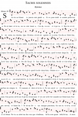 Hymnus SACRIS SOLEMNIIS, notazione quadrata su foglio A4.