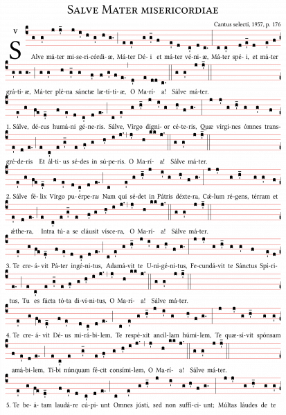 Varia: SALVE MATER MISERICORDIAE, notazione quadrata su foglio A4. Pag. 1