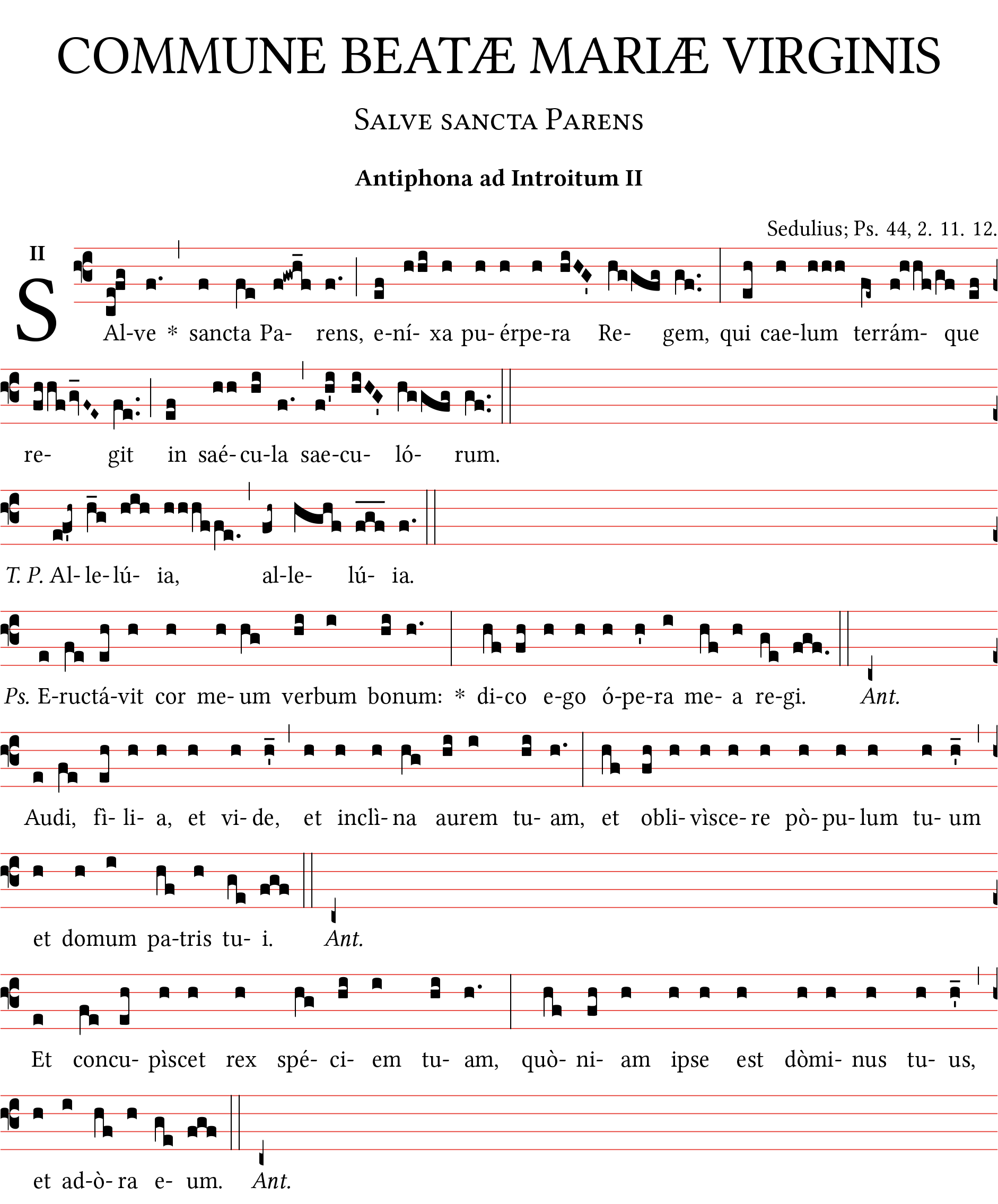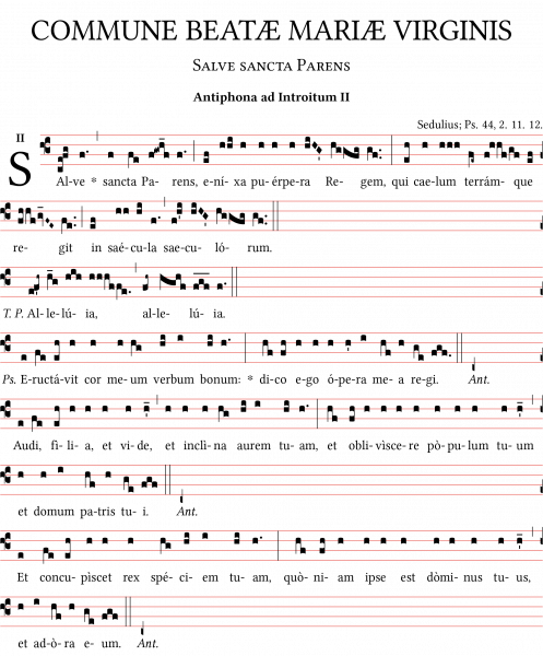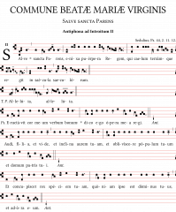 Antiphona ad Introitum SALVE SANCTA PARENS, notazione quadrata su foglio A4.