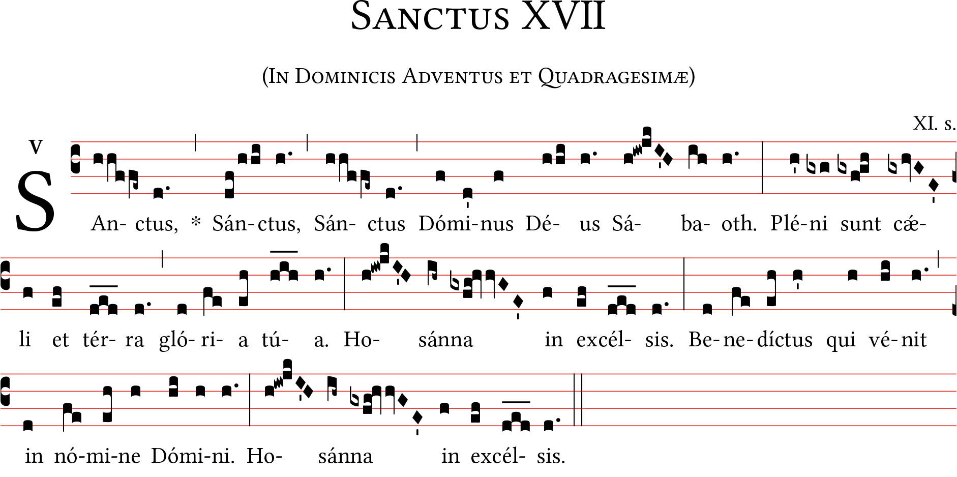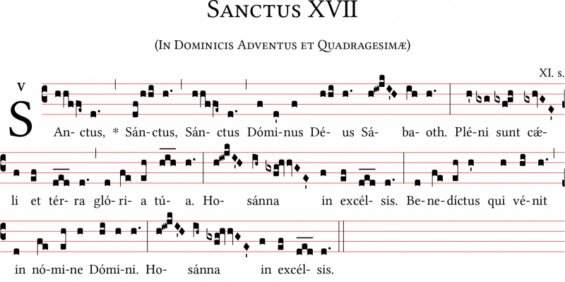 Missa XVII (in dominicis Adventus ed Quadragesimae), Sanctus XVII formato A4 notazione quadrata.