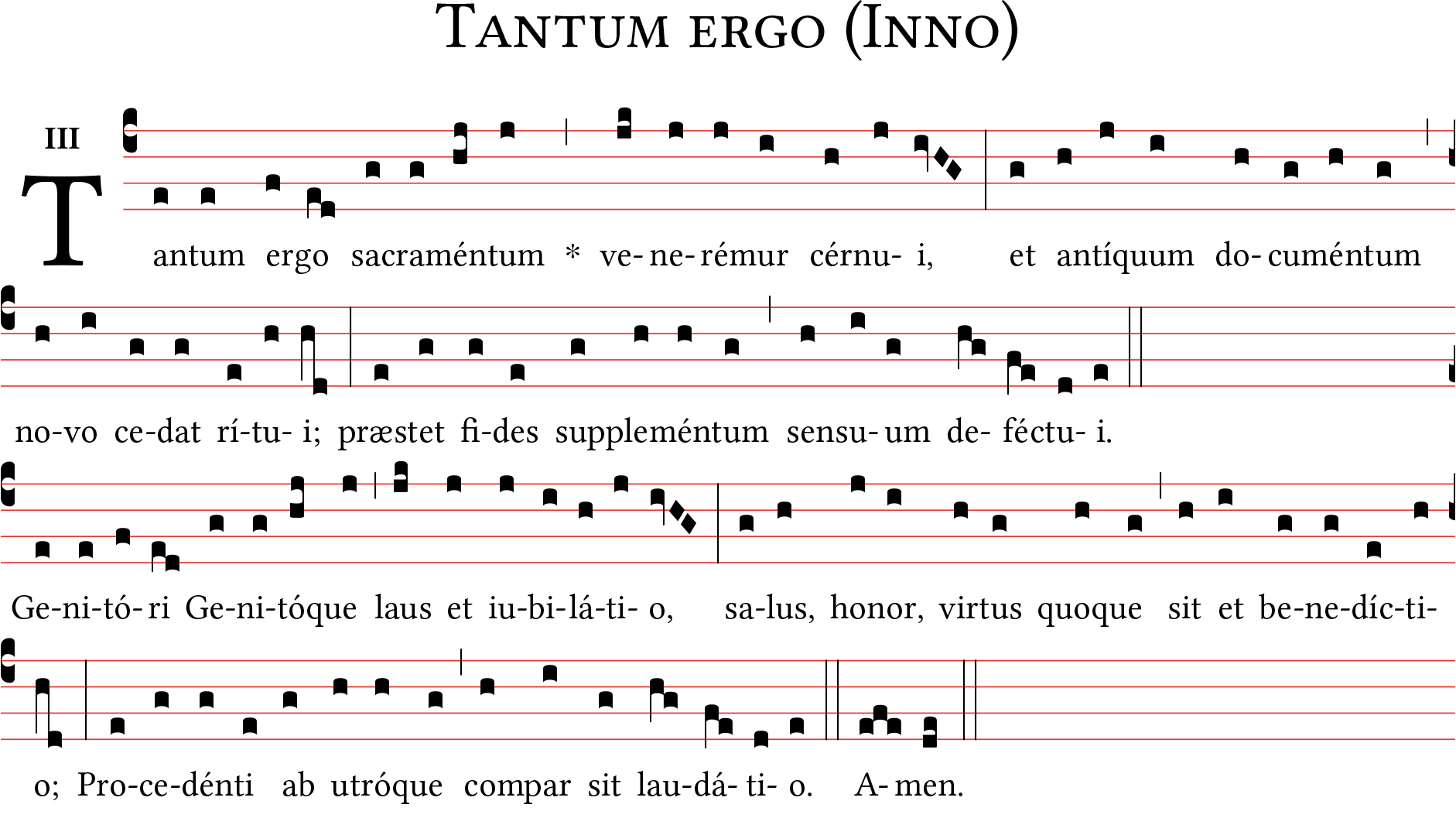 Inno TANTUM ERGO, notazione quadrata su foglio A4 PDF.