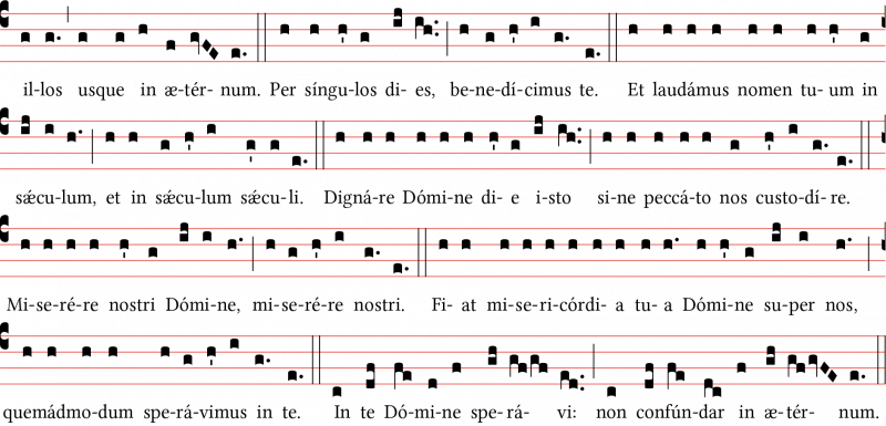 Inno TE DEUM (Tono simplex), notazione quadrata, foglio A4, formato PDF. Pagina 2.