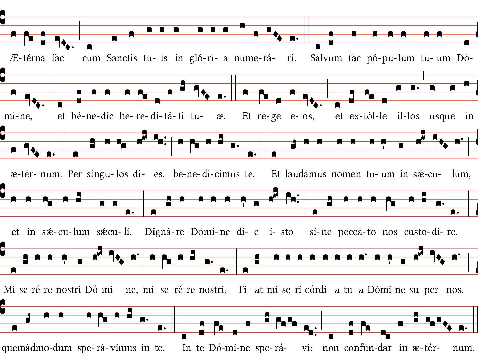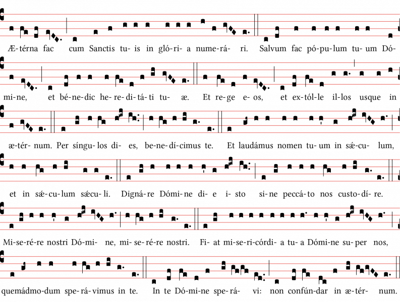 Inno TE DEUM TONUS SOLEMNIS, notazione quadrata su foglio A4, Graduale Romanum (1975) pag. 838. Pag. 2.